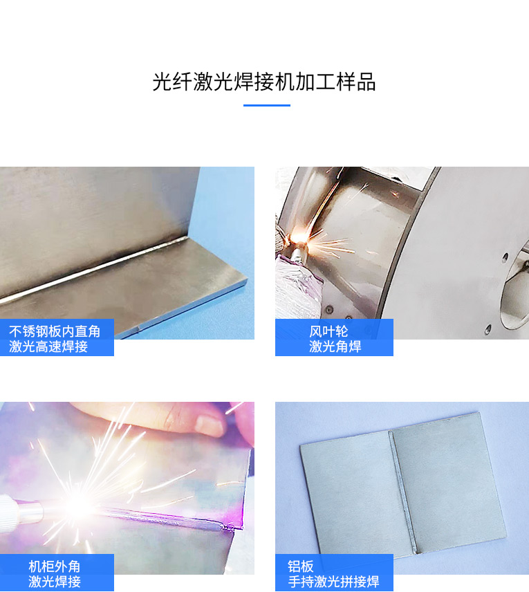 通發激光一體式手持式激光焊接機,用手持式焊接槍替代以前固定光路,手拿焊接,靈活方便,焊接距離更長,克服工作臺空間的局限性,工件尺寸不統一時無法自動焊接的情況下使用。主要針對大型工件、固定位置如內直角、外直角、平面焊縫焊接、焊接時熱影響區域小,變形小、而且焊接深度大,焊接牢固。是遠距離焊接大工件的較為靈活的全新的焊接工藝。