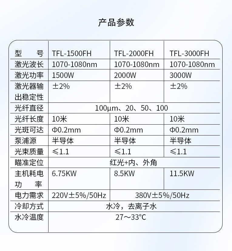型 號 TFL-1000FH TFL-1500FH TFL-2000FH TFL-3000FH